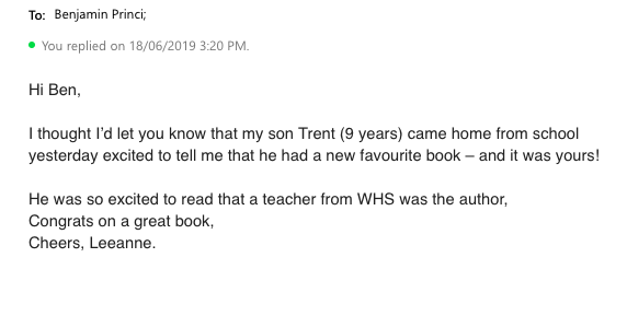 I even had an SSO at school tell me, her son had borrowed my book at library of his local school. I had left copies with the school after doing a reading for ‘Book Week’ in 2018, where a couple of students have since read it and told me how much they enjoyed it. However, I had not really spoke to the SSO before and when she emailed to inform me that my book had become his favourite, I can not explain the warm feelings I felt inside. All this has happened in the last month and a half.